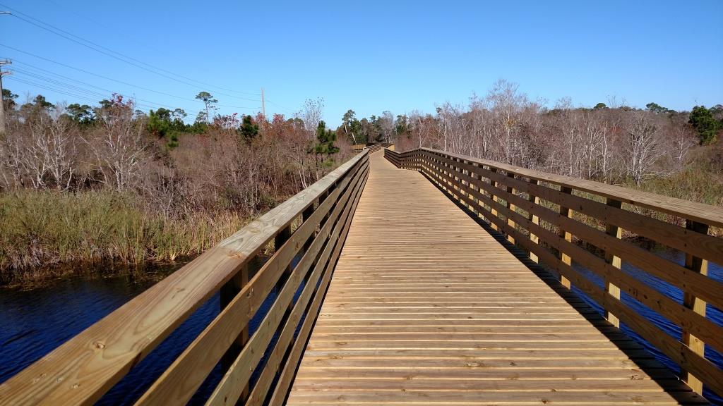New to me are the bridges to keep the bicycles and walkers off the environmental sensitive areas. One bridge seems to run at least a half mile in length on the north side of Possum Road.